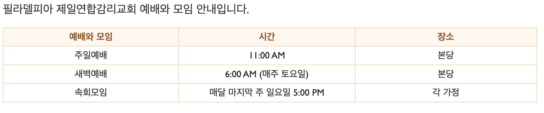 우리는 우리교회의 가족이 되기를 원하시는 분들을 예수 그리스도의 마음으로 사랑하고 하늘 아버지의 심장으로 섬길 것입니다. 이 만남을 통해 예수 그리스도께서 주시는 생명을 얻게 하고 그 생명을 더욱 풍성하게 하는 축복 속으로 함께 들어갈 것입니다. 필라델피아 제일연합감리교회를 여러분의 Church Home 으로 선택해보십시오.